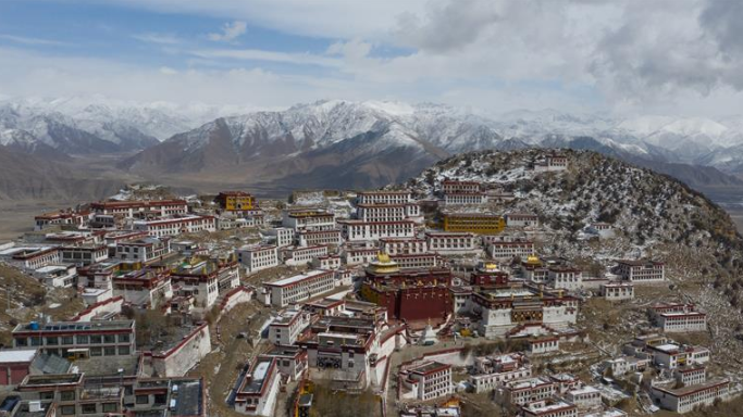 鳥(niǎo)瞰雪后甘丹寺