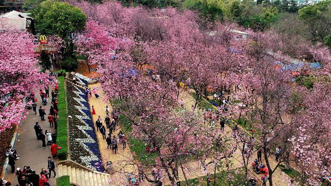 昆明圓通山公園的數(shù)千株櫻花燦爛綻放,吸引了市民和游客前來觀花賞景。昆明圓通山公園的數(shù)千株櫻花燦爛綻放,吸引了市民和游客前來觀花賞景。