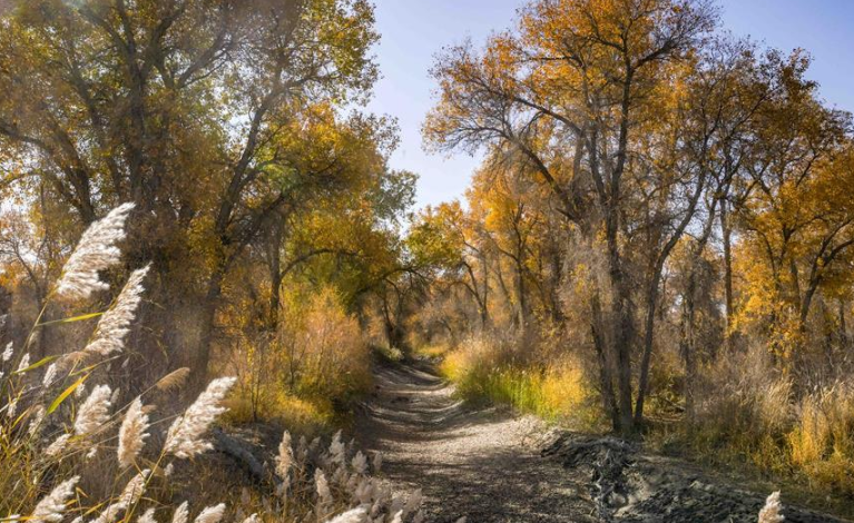 10月中下旬,靜靜的塔里木河中下游一片金黃。胡楊深處,條條小路蜿蜒綿長(zhǎng)通向遠(yuǎn)方,引人入勝。