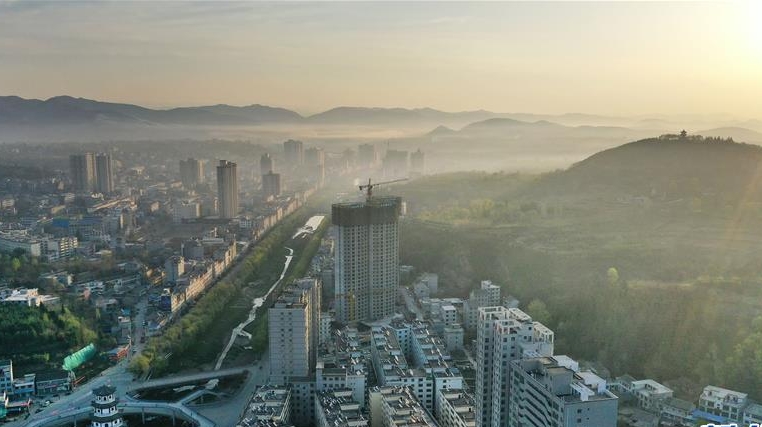 陜西省商洛市洛南縣位于秦嶺深處,在晨曦的沐浴下,縣城與周邊的山脈風(fēng)光優(yōu)美。