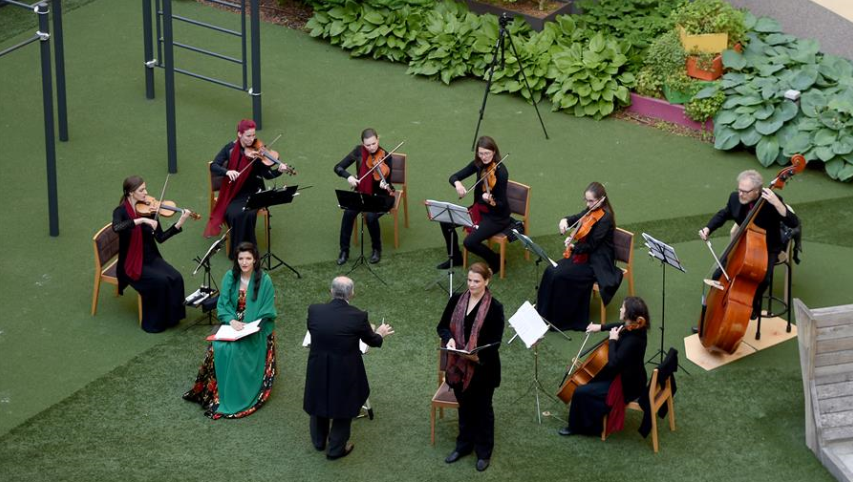5月30日,奧地利首都維也納的一家名為“時代精神”的酒店為迎接“解封”后恢復營業(yè),在其庭院內(nèi)舉辦“窗口音樂會”。