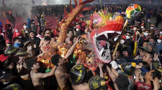 福建長(zhǎng)汀縣童坊鎮(zhèn)彭坊村的“刻(鑿)紙龍燈”正式亮燈,喜迎即將到來(lái)的元宵節(jié)。