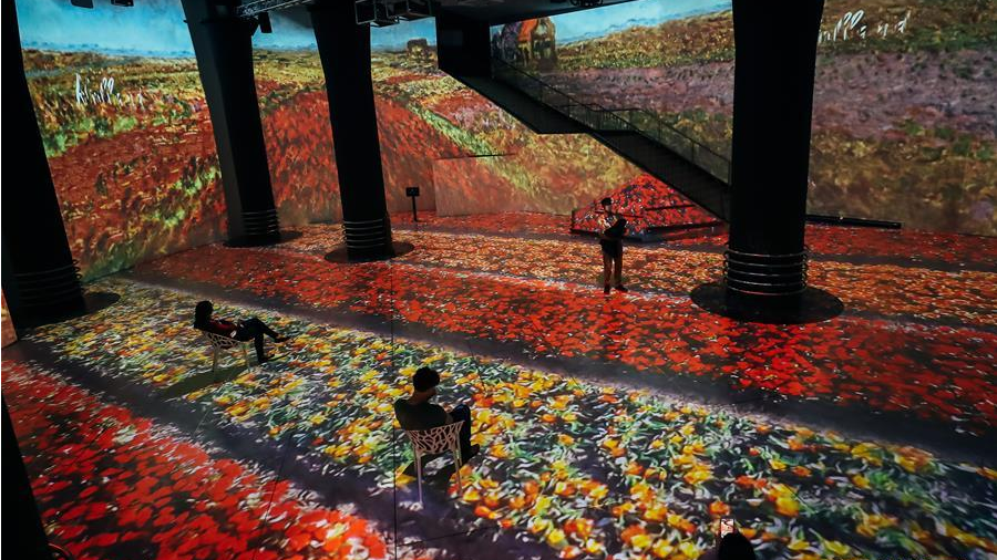這是6月10日在比利時(shí)布魯塞爾拍攝的“沉浸式莫奈藝術(shù)展”現(xiàn)場(chǎng)。