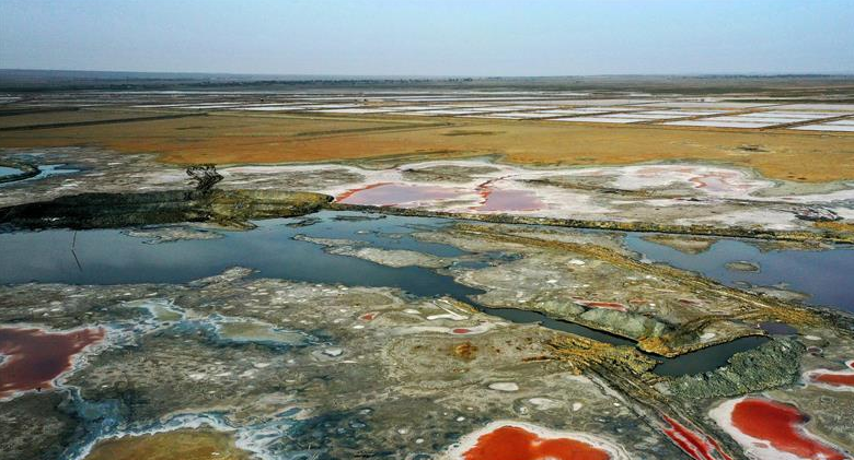 定邊鹽湖群是陜西唯一的湖鹽產(chǎn)區(qū)。其中最大的鹽湖——茍池,由于湖中含有大量藻類和不同礦物質(zhì)成分,陽光下呈現(xiàn)出絢爛色彩,美不勝收。