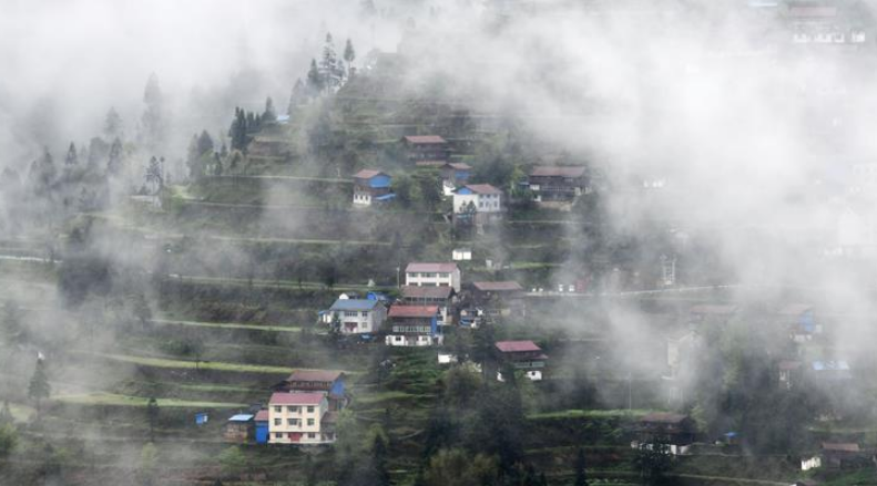 當日,在貴州省黔東南苗族侗族自治州,一場春雨過后,村莊、山川、田野在薄霧中若隱若現(xiàn),美若畫卷。