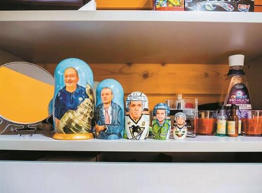 說(shuō)起來(lái),老烏沙科夫和中國(guó)也有點(diǎn)緣分,因?yàn)樗膬合眿D是一位來(lái)自中國(guó)杭州的女孩。烏沙科夫的家處于莫斯科郊外的富人區(qū),其實(shí)當(dāng)你踏入他家大門,就能立刻感覺(jué)踏入了一個(gè)冰球運(yùn)動(dòng)員的世界。墻角里擺放著的全是冰球桿,家里的各種裝飾也都是由冰球桿以及各種海報(bào)組成的。最有趣的是,套娃和伏特加酒瓶上,都特別定制著老人的照片?!斑@個(gè)很棒!”記者指著套娃說(shuō)道,而老烏沙科夫聳聳肩,表示很淡定。