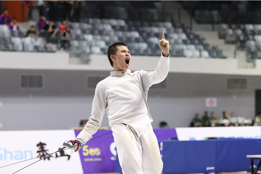 決賽中,東道主選手黎煥廉多次因為腿部不適申請暫停,比賽也因為器材問題一度暫停了將近10分鐘。不過,在深圳擊劍隊教練王樺陽的提示下,周子翔仍然保持著自己的節(jié)奏,在比賽末段連續(xù)得分,收獲一枚來之不易的金牌。