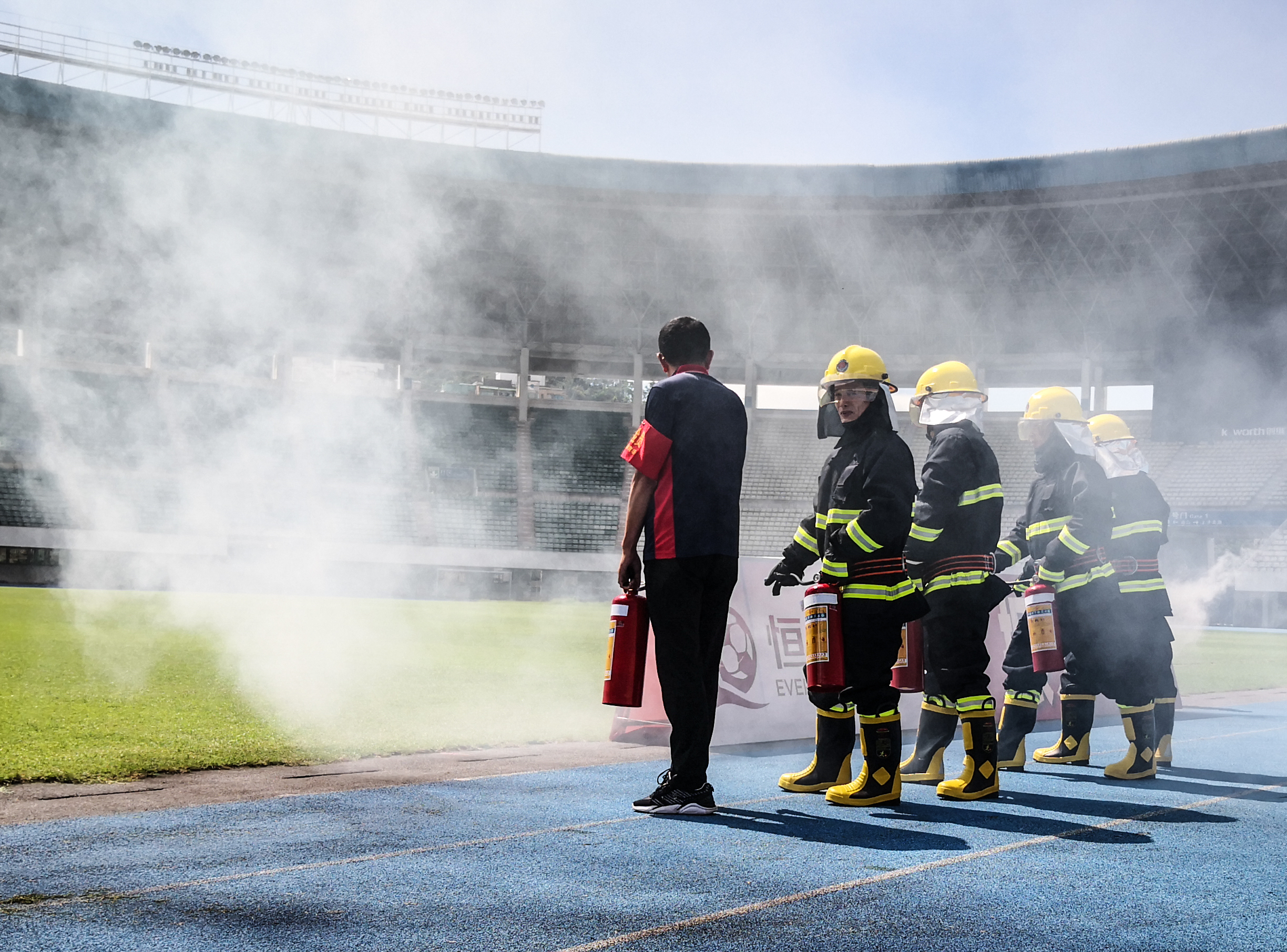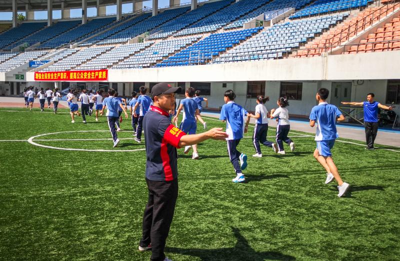 為確保本次演練到位,體育中心特別邀請(qǐng)了羅湖中學(xué)初中部的同學(xué)參加演練,讓孩子們有一次親身感受火災(zāi)疏散的經(jīng)歷,了解火災(zāi)疏散的流程,提升同學(xué)們的自救意識(shí)和技能。15:00,體育中心體育場(chǎng),隨著一聲警報(bào)聲的響起各工作組在體育場(chǎng)播音系統(tǒng)指揮下第一時(shí)間到達(dá)指定位置,搶險(xiǎn)求援組迅速開(kāi)展消防滅火,警戒疏散組指揮在場(chǎng)地和看臺(tái)的學(xué)生快速、有序從就近路線撤離至廣場(chǎng)安全區(qū)域,并尋找是否有遺漏的學(xué)生。師生到達(dá)廣場(chǎng)安全區(qū)域,各班班主任清點(diǎn)學(xué)生人數(shù),確保學(xué)生無(wú)一人滯留,并層層上報(bào)。不到9分鐘時(shí)間,600多名羅湖中學(xué)初中部師生全部安全撤離。整個(gè)演習(xí)過(guò)程流程清晰,信息傳達(dá)準(zhǔn)確、及時(shí),疏散指揮反應(yīng)快速,未發(fā)生學(xué)生擁擠、無(wú)序的安全隱患,演習(xí)效果理想。