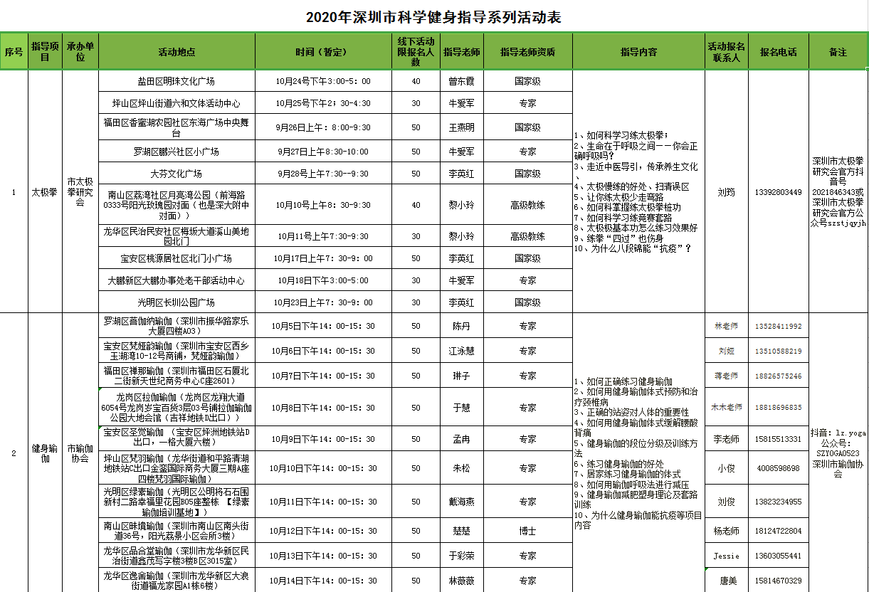 “科學(xué)健身指導(dǎo)活動”由深圳市文化廣電旅游體育局主辦,旨在通過分批、分點等方式,在做好疫情防控的同時,針對不同人群進行戶外健身運動個性化指導(dǎo)服務(wù),助力全市煥發(fā)新活力,促進全民健身高質(zhì)量發(fā)展?;顒幼?月2日啟動以來,已有眾多一線社會體育指導(dǎo)員和體育產(chǎn)業(yè)專家通過深入社區(qū)現(xiàn)場教學(xué)、錄制視頻等方式,向廣大市民宣傳、講解科學(xué)健身的知識和方法。