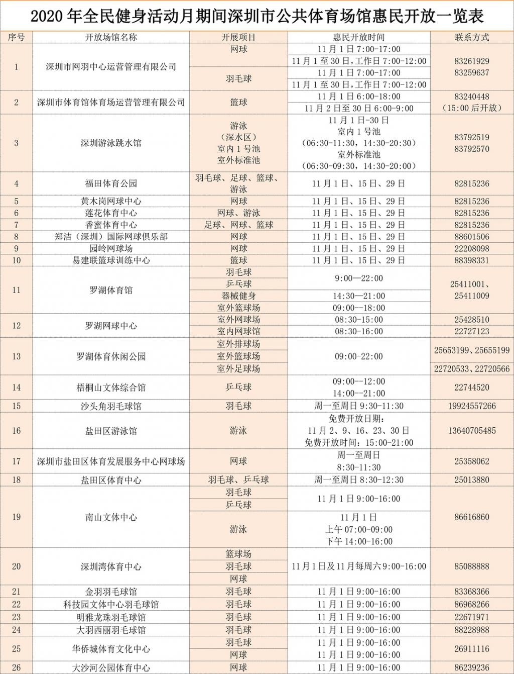 2020年深圳全民健身活動(dòng)月深圳惠民場(chǎng)館開(kāi)放表