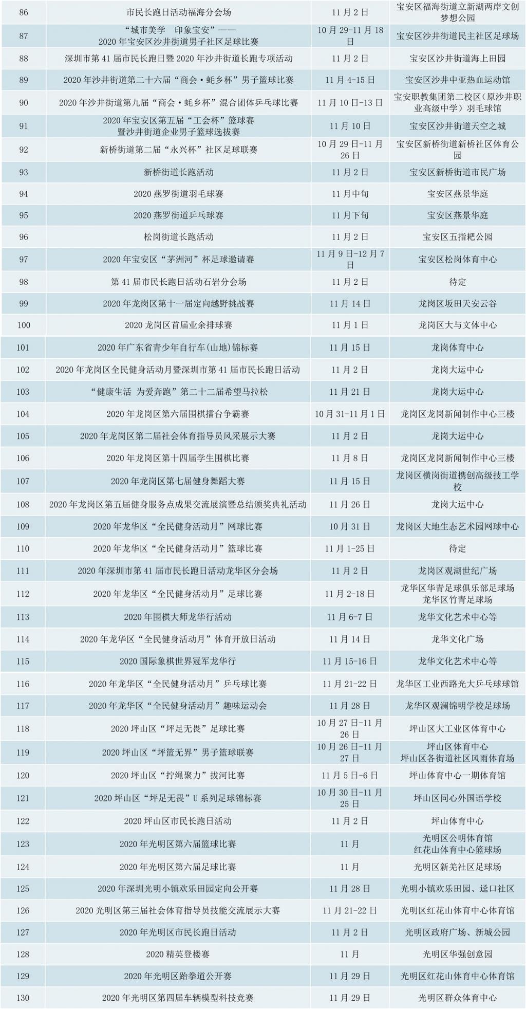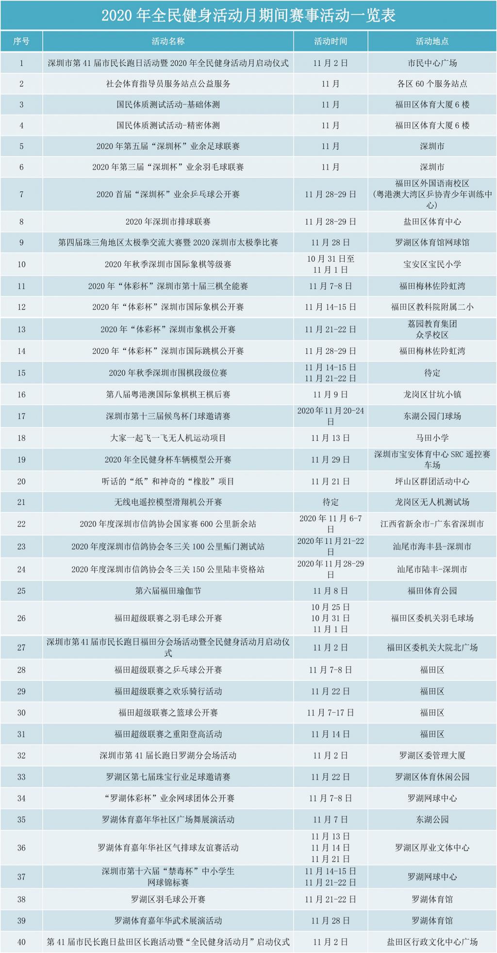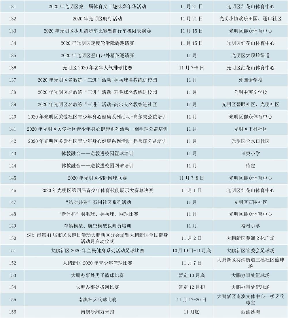 附2020年深圳全民健身活動(dòng)月期間賽事活動(dòng)表:
