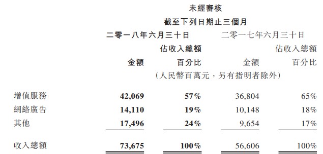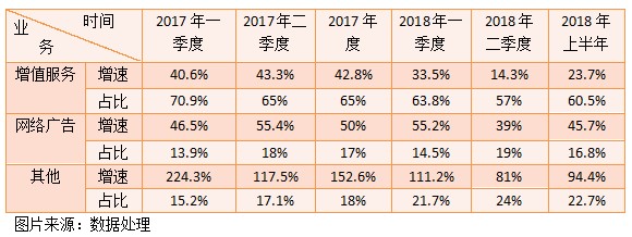下面我們看該公司業(yè)務收入的變化,先看大類分錄,有增值業(yè)務、網(wǎng)絡(luò)廣告和其他業(yè)務。
