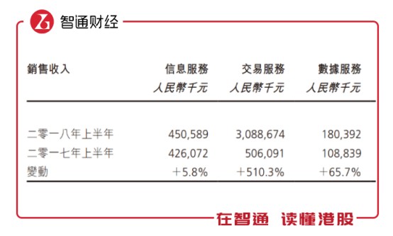 板塊方面,交易板塊是此次營收貢獻的主力軍,共為總營收貢獻81.5%的銷售收入。上半年,交易服務(wù)板塊營收入約30.9億人民幣,較去年5.06億增長約510%。信息服務(wù)板塊營收約人民幣4.5億,同比增長5.8%。數(shù)據(jù)服務(wù)板塊則貢獻營業(yè)收入約1.81億元人民幣,較去年1.09億增長66%。利潤率方面,信息服務(wù)增長7.12%,交易服務(wù)增長188.5%,數(shù)據(jù)服務(wù)增長23.45%。