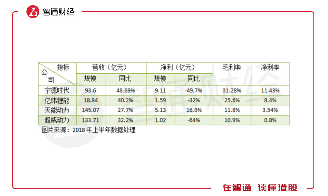 兩大鉛酸電池龍頭天能動力(00819)和超威動力(00951)也在積極轉(zhuǎn)型生產(chǎn)鋰動力電池,鋰動力電池成為國內(nèi)未來電池行業(yè)角逐的主要戰(zhàn)場。鋰電池的成長能力及盈利能力要比鉛酸電池高,上半年,由于政策影響,鋰電行業(yè)凈利潤出現(xiàn)下滑較大,但凈利率仍遠高于鉛酸電池。