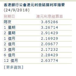 智通財經(jīng)APP獲悉,9月24日,隔夜港元HIBOR報3.85286%,上升200.5個基點(diǎn)。