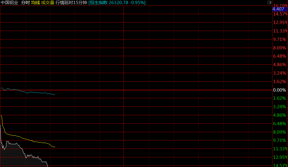 智通財經(jīng)APP獲悉,中國鋁業(yè)(02600)H股早盤急挫12%,現(xiàn)價與A股表現(xiàn)背馳,A股漲0.99%。截至9時58分,跌12.27%,報價3.36港元,成交額1.23億。