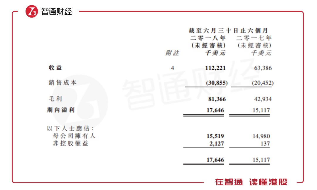 遠(yuǎn)的不說(shuō),就以今年中期為例,該公司收益1.12億美元(單位下同),同比增長(zhǎng)77%;凈利潤(rùn)1552萬(wàn),同比增長(zhǎng)3.3%。毛利約為8140萬(wàn),較2017年同期的約4290萬(wàn)增長(zhǎng)89.7%。毛利率為72.5%,高于去年同期的67.7%。