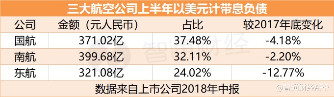 智通財(cái)經(jīng)APP了解到,2015年高峰時(shí),三大航空公司美元負(fù)債水平普遍在80%左右。2018年中期財(cái)報(bào)顯示,截止2018年6月30日,國航以美元計(jì)的帶息負(fù)債占帶息負(fù)債總額比重已經(jīng)降至37.48%,南航、東航的美元帶息負(fù)債占比也分別降至32.11%、24.02%。絕對金額方面,目前以人民幣計(jì)美元有息負(fù)債規(guī)模,國航為371.02億、南航399.68億、東航321.08億。