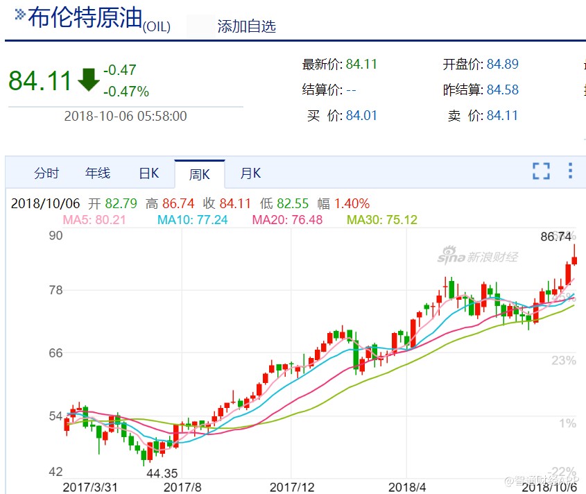 油價(jià)漲勢仍在持續(xù)。10月3日,布倫特原油盤中突破85美元/桶關(guān)口,創(chuàng)下近四年新高,這已是布倫特油價(jià)連續(xù)第5個(gè)季度上漲,是2007年初以來最長的一個(gè)上漲周期。