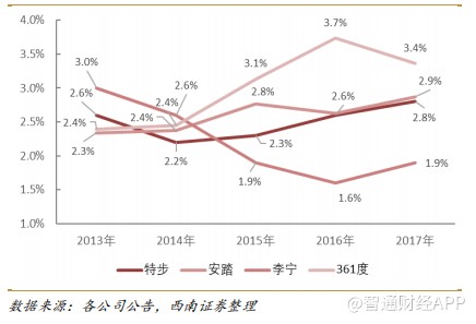 其邏輯之一是,特步在2015年開啟變革之后,從品牌定位、產(chǎn)品、渠道、運營四方面進(jìn)行了全方位變革,公司從一家產(chǎn)品公司轉(zhuǎn)型為一家品牌公司。2017年末,公司用1.2億元一次性回購2015年前生產(chǎn)的產(chǎn)品,徹底清除歷史包袱,為業(yè)績反轉(zhuǎn)奠定基礎(chǔ)。