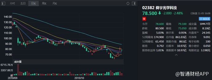 截至今日收盤,舜宇光學(xué)科技(02382)報(bào)78.5港元,跌2.48%。(張佩暄)