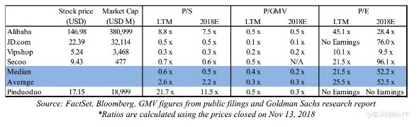 拼多多截至2018年第二季度的12個月市銷率為21.7倍,是行業(yè)巨頭阿里巴巴(8.8倍)的兩倍有余,也是京東(0.5倍)等更成熟的中國電子商務(wù)企業(yè)的44倍之多。京東的大部分收入來自直銷,而非商家服務(wù),因此這種對比并不完美,但這只是一個例證。若按照2018年的市盈率計算,與阿里巴巴和其他中國電子商務(wù)公司相比,拼多多的股價仍然顯得非常昂貴(11.5倍)。