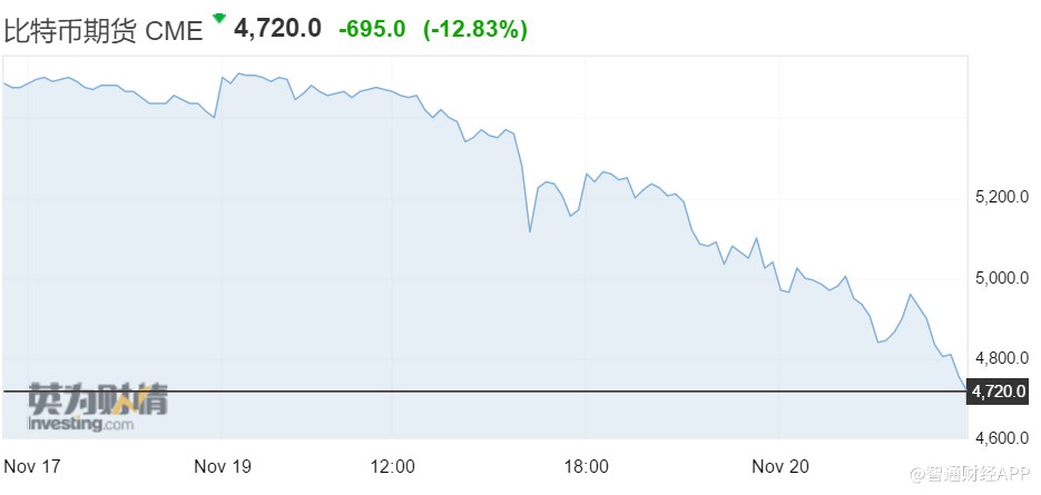 智通財經(jīng)APP獲悉,因悲觀情緒持續(xù)存在,比特幣在幣值跌破6000美元長達一周之后,昨日又暴跌12.83%,跌破5000美元關(guān)口,報4720美元。過去7天,比特幣跌超22%;今年以來累跌60%以上;與歷史高點相比累跌70%以上。