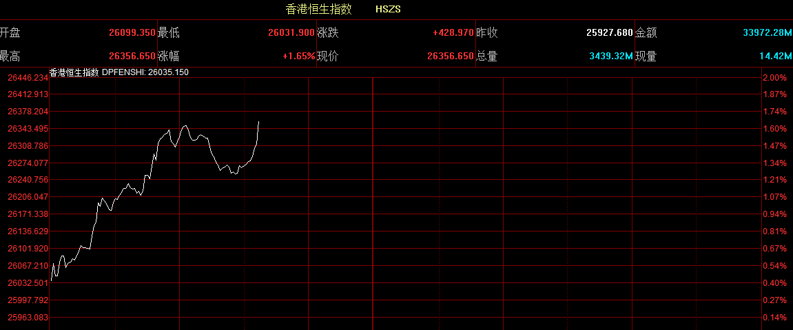 智通財(cái)經(jīng)APP獲悉,恒生指數(shù)開盤漲0.66%,報(bào)26099.35點(diǎn)。國(guó)企指數(shù)漲0.63%,報(bào)10453.82點(diǎn)。紅籌指數(shù)漲0.48%,報(bào)4281.96點(diǎn)。大市盤前成交11.68億港元。
