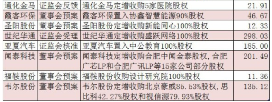 并購重組經(jīng)歷近二年的低谷后,政策由緊到松,目前快速回暖,概念股逐步走強(qiáng),近日又有多家公司公布并購方案;