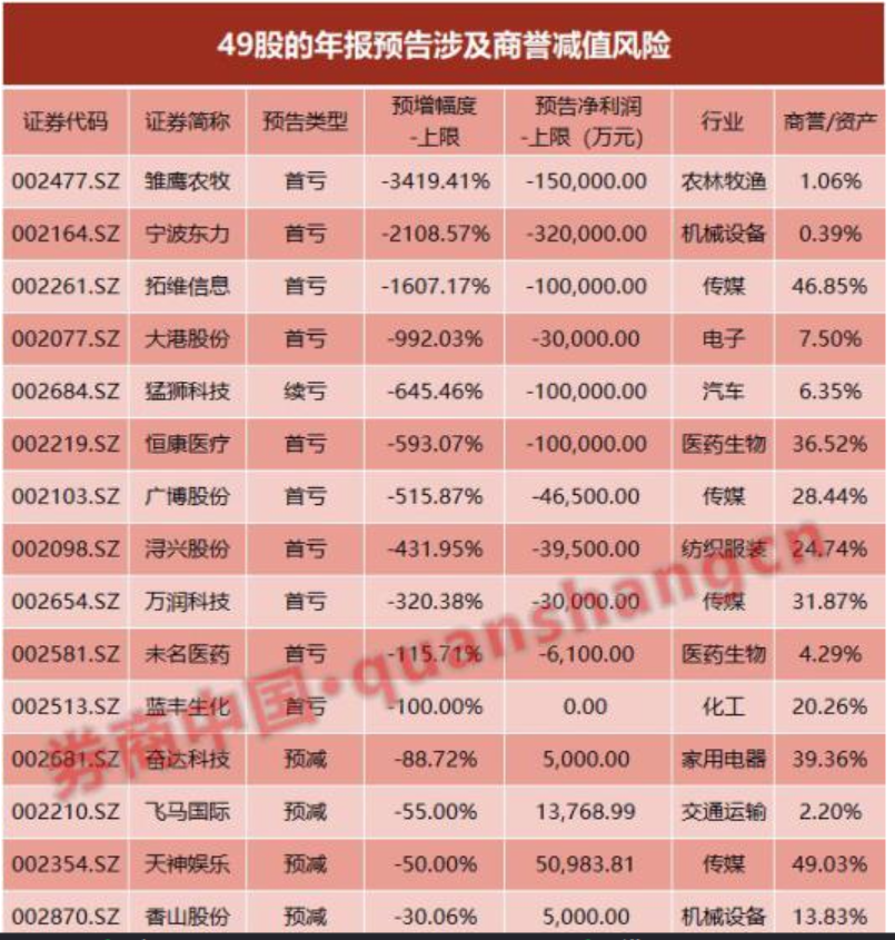操作建議:本周外圍股市圣誕休市,A股超跌、政策利好顯現(xiàn)下有望企穩(wěn)、回升;50白馬藍(lán)籌持續(xù)調(diào)整顯示中線(xiàn)資金籌碼松動(dòng),市場(chǎng)結(jié)構(gòu)性?xún)r(jià)值中樞再下臺(tái)階,近期注意回避業(yè)績(jī)風(fēng)險(xiǎn),尤其是商譽(yù)減值對(duì)公司年報(bào)影響。創(chuàng)歷史新高的1.4萬(wàn)億A股商譽(yù),已切實(shí)地影響上市公司的年度業(yè)績(jī);在已發(fā)布的年報(bào)業(yè)績(jī)預(yù)告中國(guó),有49家公司認(rèn)為存在商譽(yù)減值風(fēng)險(xiǎn),將在2018年年底進(jìn)行減值測(cè)試,一旦確認(rèn)減值,將導(dǎo)致2018年業(yè)績(jī)下滑、轉(zhuǎn)虧或擴(kuò)大虧損,商譽(yù)減值成為一些公司業(yè)績(jī)不確定性的一大來(lái)源。