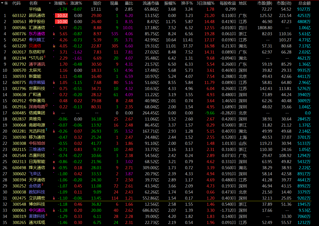 超乎尋常的頑強(qiáng),早盤競價除東方通信(600776)與超訊通信(603322),板塊近乎全軍盡歿,但開盤后泰永長征(002927)、東方通信(600776)快速上拉,超訊通信(603322)封死一字板,給了市場短線資金信心,抄底盤開始進(jìn)場,板塊開始迅速上攻。從今天早盤的表現(xiàn)看,5G板塊資金介入程度頗深,后續(xù)應(yīng)重點關(guān)注。