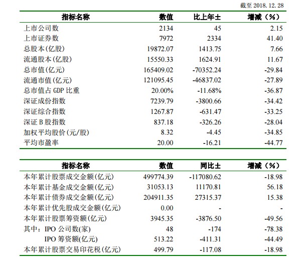 智通財(cái)經(jīng)APP獲悉,深交所于12月28日晚間發(fā)布2018年深圳證券市場(chǎng)概況數(shù)據(jù)顯示,截至當(dāng)日收市,上市公司總數(shù)2134家,增2.15%;總市值為165409.02億元,降低29.28%;加權(quán)平均股價(jià)為8.32元/股,跌34.85%。平均市盈率跌44.77%至20倍。