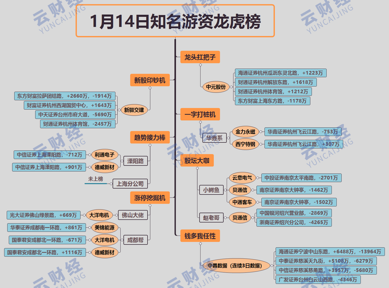 其他游資方面,趙老哥兩席位合計(jì)賣出貝通信(603220)7134萬(wàn),小鱷魚賣出云意電氣(300304)、貝通信(603220)、中通客車(000957)各2701萬(wàn)、1462萬(wàn)、1502萬(wàn),佛山幫買入大洋電機(jī)(002249)669萬(wàn)。