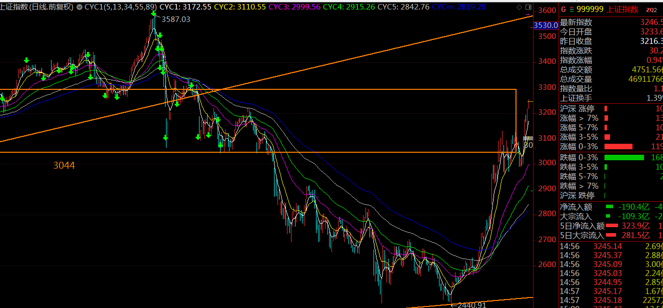 日線看,上證指數(shù)這里接近大級別中樞的上軌3295點,這里短線大概率會震蕩回落,一蹴而就的可能性不大。
