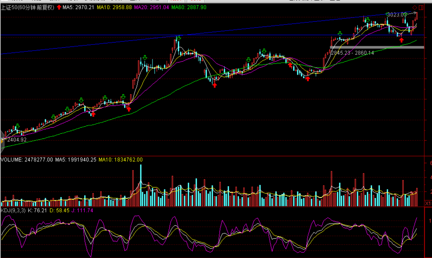 技術(shù)面:短期股強(qiáng)勁反彈修復(fù)調(diào)整結(jié)構(gòu),維持高位震蕩,60分鐘看上證50面臨壓力,預(yù)計(jì)今日股指沖高受阻,小陰或小陽報(bào)收。