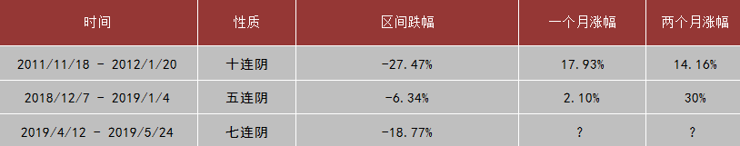 上周市場周一探底后,在稀土、芯片、華為概念等貿(mào)易戰(zhàn)板塊個股帶領(lǐng)下上破2900點,最終由于量能不濟,震蕩回落。最終,上證指數(shù)報收2852.99點,周跌幅-1.02%;深證綜指報收1496.03點,跌-2.43%;創(chuàng)業(yè)板指收1443.75點,跌-2.37%。值得一提的是,創(chuàng)業(yè)板指數(shù)周k線七連陰,統(tǒng)計表明,創(chuàng)業(yè)板歷史上,周k線出現(xiàn)五連陰及以上的情況僅有兩次,無一例外的對應(yīng)了階段性底部區(qū)域。對應(yīng)后續(xù)一個月及兩個月的漲幅如下表所示: