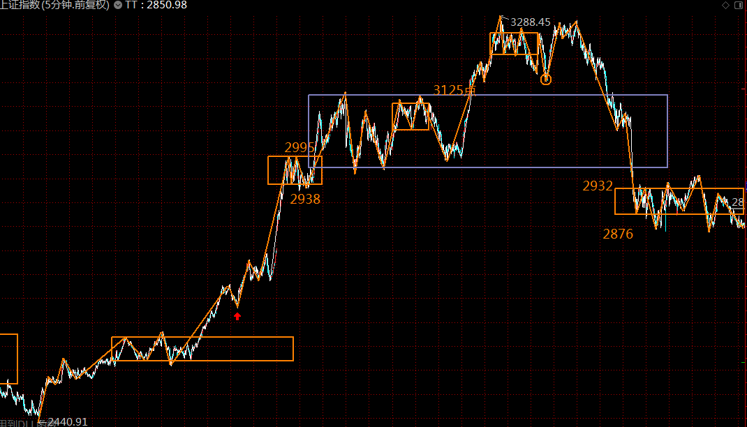 下圖為上證指數(shù)五分鐘級別走勢結(jié)構(gòu),第三類賣點已過,第一類買點正在構(gòu)建中,預計最差的情況,周一周二即可走完這波調(diào)整走勢,第一目標回補上方3050處的貿(mào)易戰(zhàn)缺口。