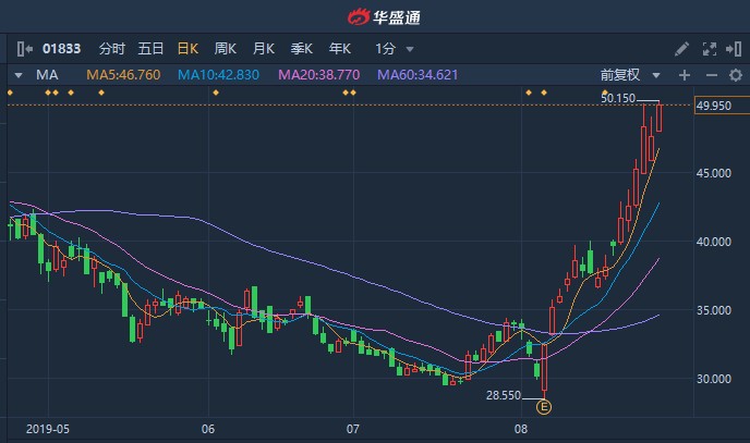 智通財經(jīng)APP獲悉,國家醫(yī)保局正在制定互聯(lián)網(wǎng)醫(yī)療的物價指導原則,預計將于今年9月出臺關(guān)于互聯(lián)網(wǎng)醫(yī)療相關(guān)項目的物價政策和醫(yī)保政策。市場憧憬互聯(lián)網(wǎng)醫(yī)療醫(yī)保政策落地,平安好醫(yī)生(01833)股價持續(xù)攀升,本月累漲近65%。截至發(fā)稿,漲4.41%,報49.75港元,成交額7558.81萬港元。