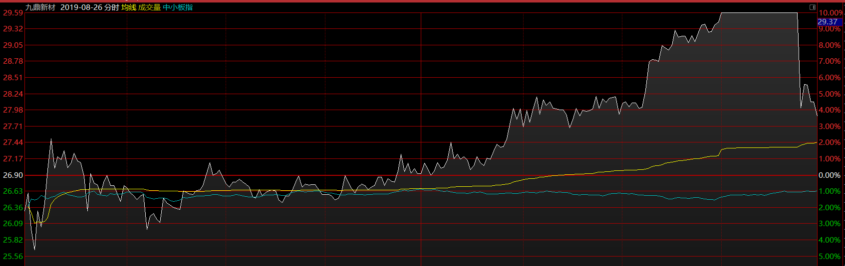 今年的市場有個特征,總是因?yàn)槟硞€人的一兩句話而大幅波動,好在市場對貿(mào)易摩擦的相關(guān)消息已逐漸變得不再敏感,消息次日市場跌幅也逐步減小。在周末貿(mào)易摩擦升溫消息刺激下,上周一大盤低開,但低開幅度遠(yuǎn)小于預(yù)期,市場也沒有出現(xiàn)恐慌的情況。尤其是高標(biāo)股九鼎新材,在前一交易日尾盤大幅分化的情況下,周一早盤僅僅微幅低開兩個點(diǎn),可以說這是一個明顯的抄底信號:市場這里跌不下去。