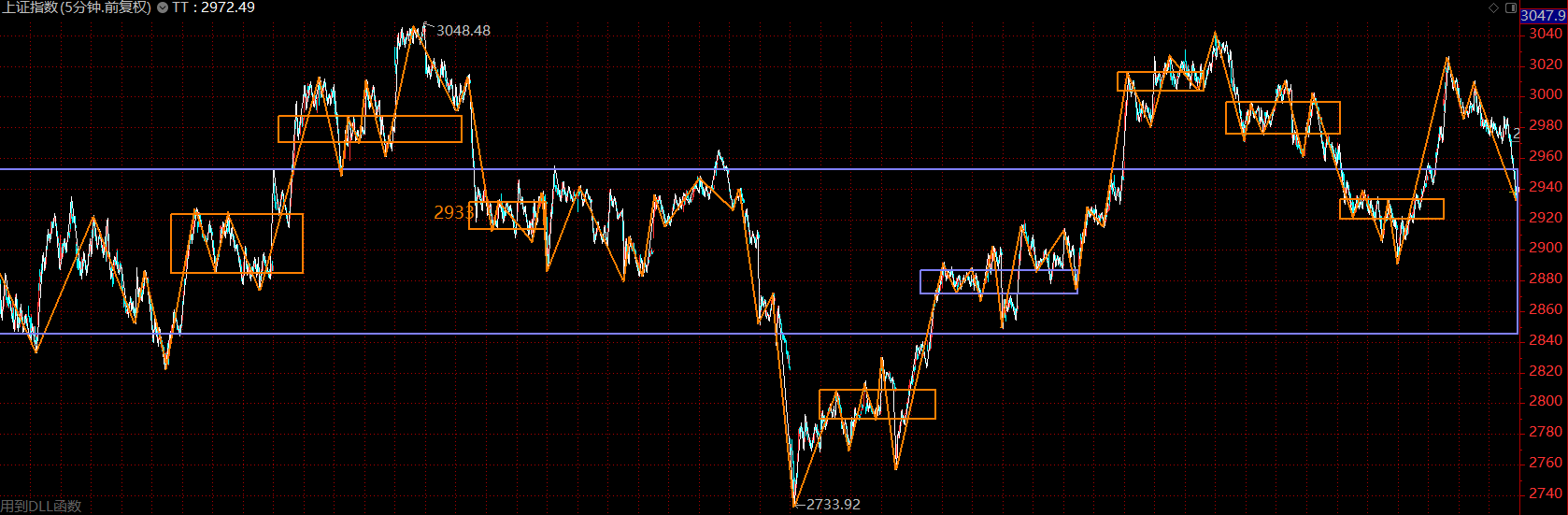 結(jié)構(gòu)上看,上證指數(shù)已跌回了大中樞內(nèi)部,市場情況不樂觀,大概率已經(jīng)確認(rèn)上周一的高點為第二類賣點。那么這里應(yīng)該轉(zhuǎn)向防守為主,反彈中應(yīng)適度降低倉位,觀望等待。關(guān)注壓力位2970點附近,可據(jù)此高拋,靜待市場回落后再行布局。