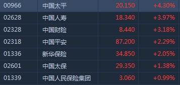 高盛指內(nèi)險股估值吸引吁買入 中國太平升逾4%領漲板塊