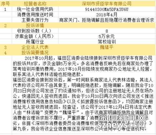 深圳市賢臣學(xué)車有限公司:企業(yè)關(guān)門,消費者培訓(xùn)退費難