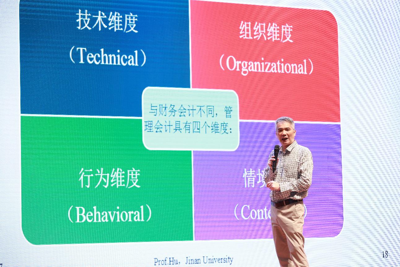 下午,暨南大學(xué)會(huì)計(jì)系教授胡玉明以“管理會(huì)計(jì)如何‘由技入道’”為題,首先分析了管理會(huì)計(jì)與財(cái)務(wù)會(huì)計(jì)有何不同,并深入淺出的剖析了大智移云背景下,管理會(huì)計(jì)的提升關(guān)鍵在于分析對數(shù)字背后意義。他強(qiáng)調(diào),會(huì)計(jì)人員對大數(shù)據(jù)等新科技挑戰(zhàn)不應(yīng)當(dāng)恐慌,反而應(yīng)當(dāng)成機(jī)遇,提升數(shù)據(jù)分析能力。