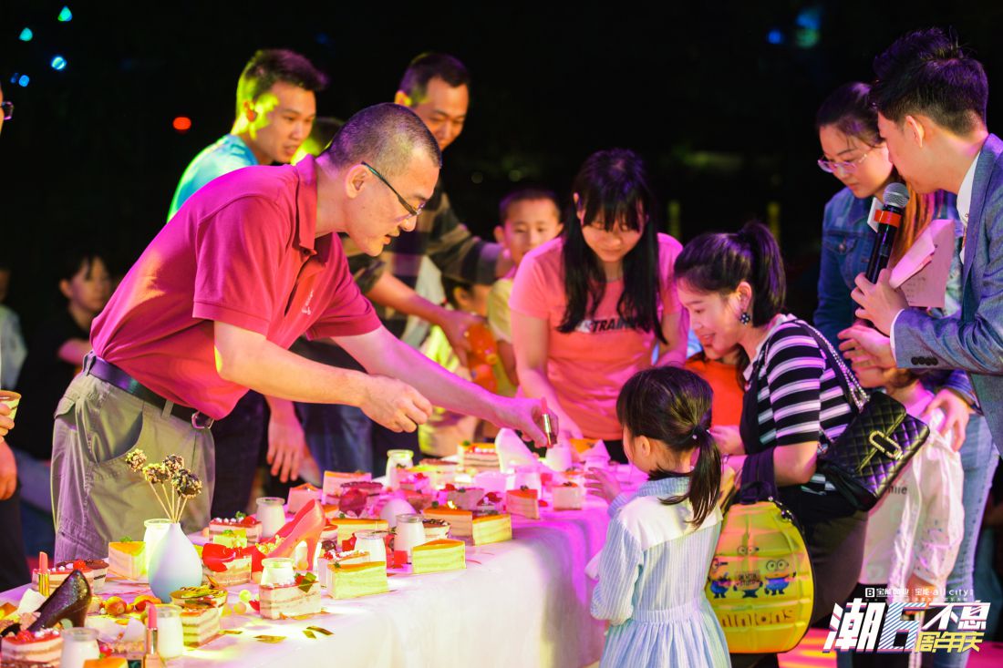 生日慶典現(xiàn)場,一首首耳熟能詳?shù)母枨g快的鼓舞、精彩的魔術(shù)等表演為市民們帶來了一場完美的視聽盛宴,抽獎環(huán)節(jié)更是將現(xiàn)場氣氛推向高潮。在“寶能·allcity6歲了,生日快樂”的祝福聲中,寶能控股高級副總裁張保文攜寶能商業(yè)副總經(jīng)理朱君及龍崗寶能·all city總經(jīng)理楊君等領(lǐng)導共同登臺切生日蛋糕,一同分享寶能·allcity生日的喜悅。