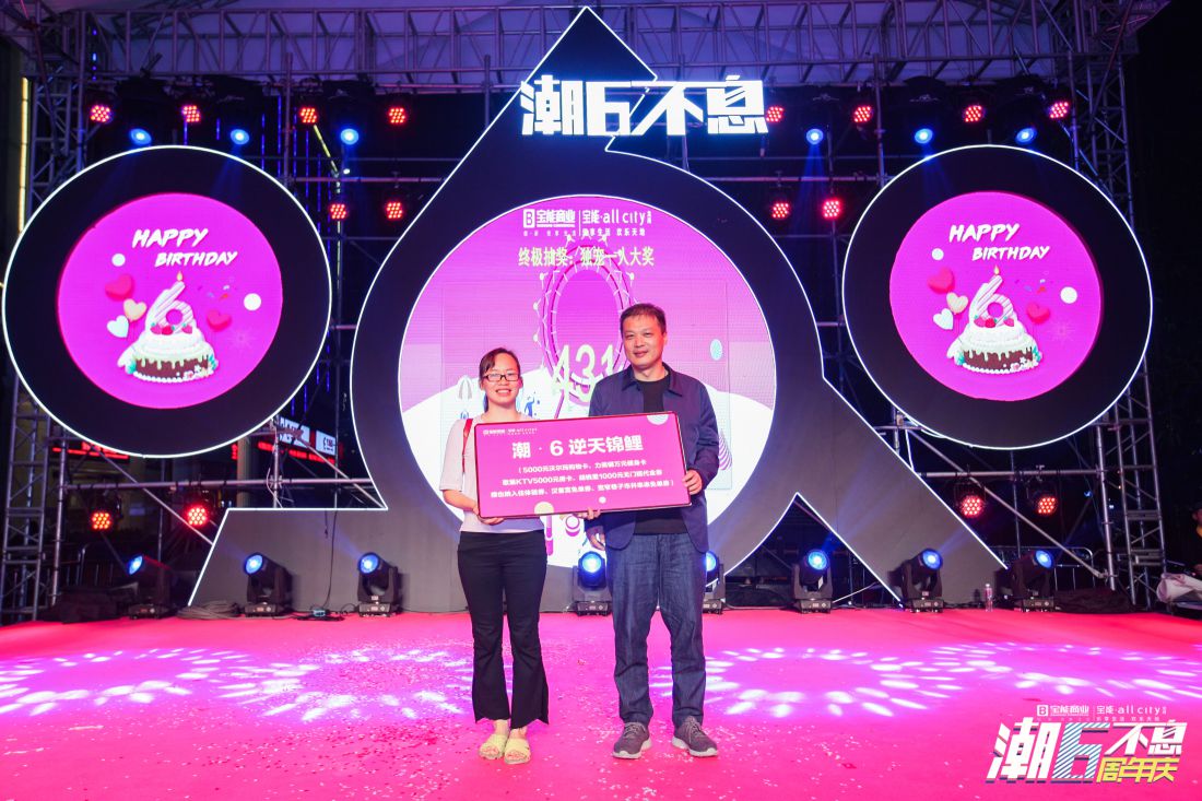 寶能商業(yè)副總經(jīng)理朱君為周年慶錦鯉大獎獲得者頒獎