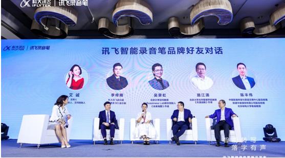 人工智能商業(yè)化專(zhuān)家吳霽虹,北京大學(xué)光華管理學(xué)院教授路江涌、艾問(wèn)創(chuàng)始人、知名創(chuàng)業(yè)者和主持人艾誠(chéng),中國(guó)聯(lián)通終端與渠道支撐中心副總陳豐偉作為訊飛智能錄音筆的品牌好友出席了發(fā)布活動(dòng)并從各自的角度闡述了人工智能與企業(yè)高效進(jìn)化、個(gè)人效率提升的密切關(guān)系。
