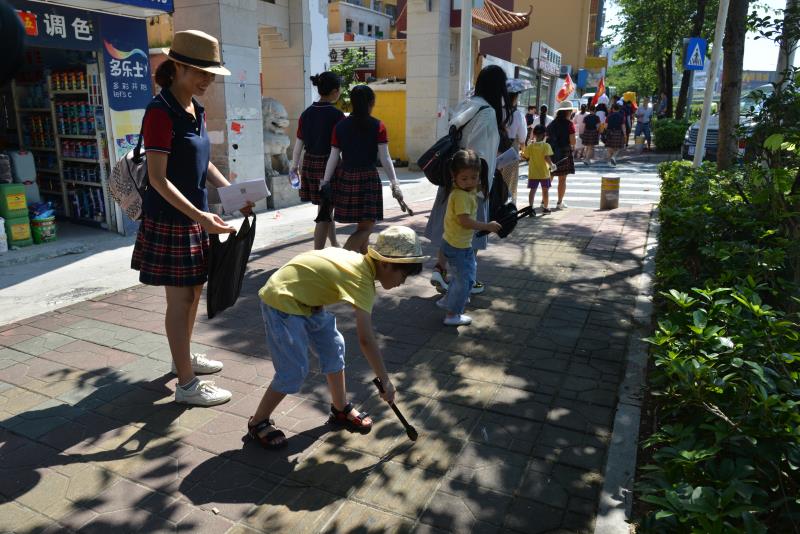 上午9點(diǎn)多,慈善小天使和志愿者們,從橫崗華明星幼兒園開始,沿著華西村和志健廣場(chǎng)等橫崗片區(qū),一路清撿道路垃圾和與路人合影宣導(dǎo),向過往市民分發(fā)“垃圾不落地”資料,宣傳環(huán)保知識(shí)。特別支持的市民,小天使們派發(fā)了棒棒糖這一他們最好的感謝禮物。