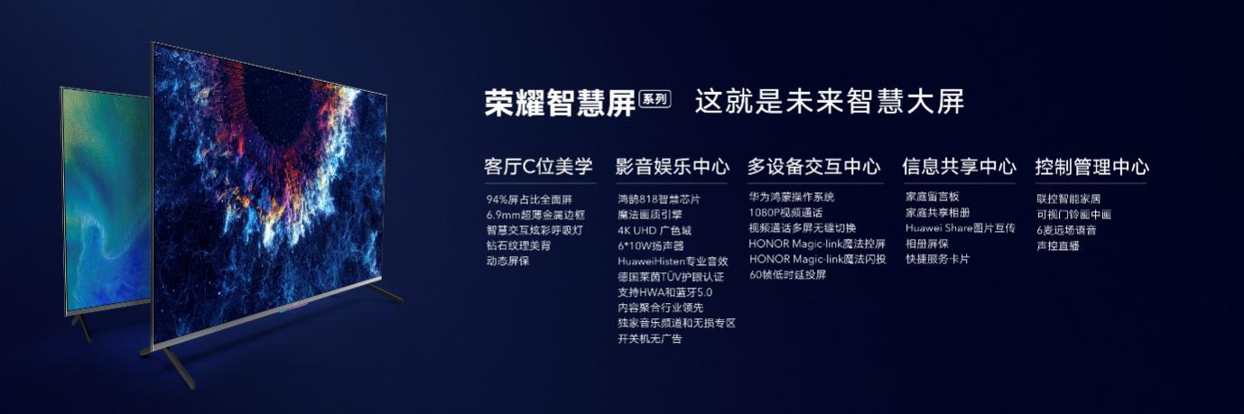 榮耀總裁趙明表示,榮耀致力為年輕人打造智慧生活雙中心,手機是個體的中心,榮耀智慧屏是家庭情感中心。它將承擔家庭中的更多角色,成為影音娛樂中心、多設備交互中心、信息共享中心和控制管理中心。