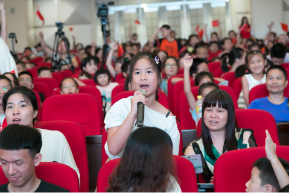 接下來,為進一步增強青少年兒童的愛國意識,主辦方將戲劇教育與愛國教育有機融合,于文明知識問答后,邀請近千名觀眾一起舞動小紅旗,齊聲唱響《我和我的祖國》,點燃了在場每一位觀眾的愛國熱情,觀眾們跟隨著旋律,共同歌唱祖國,深情祝福祖國明天更加輝煌。