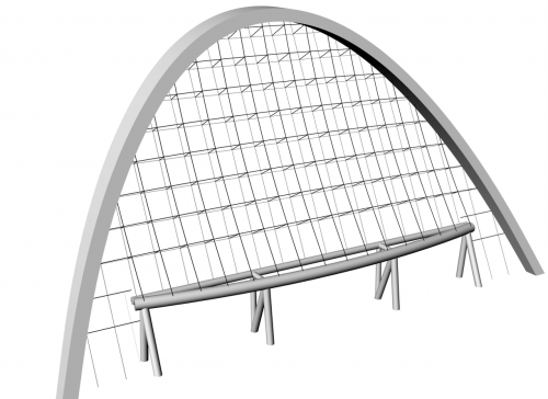 該標段施工負責人透露,這種傾斜幕墻與90度垂直地面的幕墻相比,安裝難度呈指數(shù)型增長,由于難度系數(shù)過高,目前國內(nèi)還未出現(xiàn)過相同案例。為成功安裝這面傾斜幕墻并保證其的穩(wěn)固性,專家們經(jīng)過重重研究與實驗,最終決定采用雙層索網(wǎng)系統(tǒng):內(nèi)外兩層分別采用兩種直徑的不銹鋼拉索,嚴格按照精密計算的參數(shù)橫豎向拉緊,分別呈外凸狀和內(nèi)凹狀,最后用螺桿連接以錨固整面拉索玻璃幕墻。